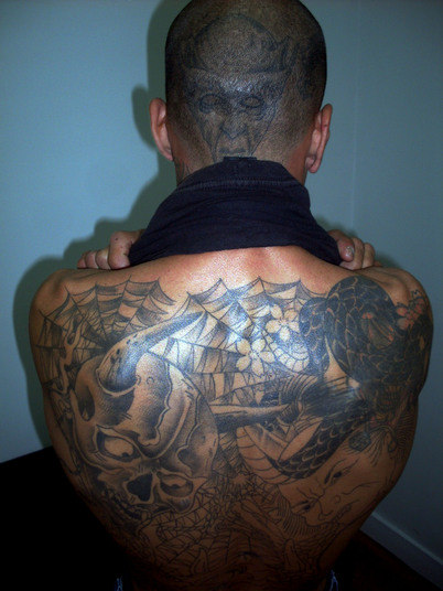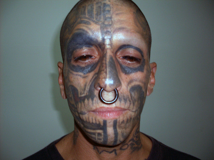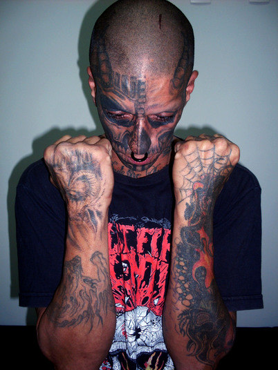 A falta de lugares fez com que ele tatuasse as mãos. Depois o tronco, pescoço, cabeça e por fim os olhos